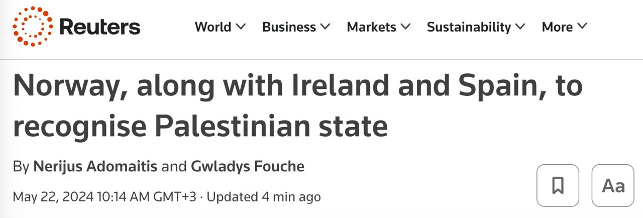 Ирландия, Норвегия и Испания официально признали Палестину независимым государством. Они рассчитывают, что это приблизит мир на Ближнем Востоке.