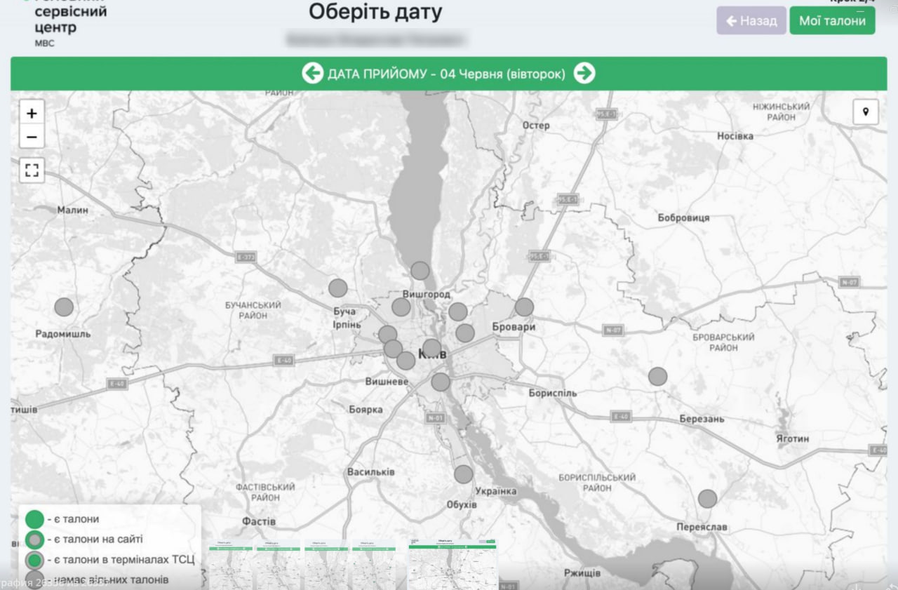 Если смотреть по всей Украине, то даже в июне сервис-центры в подавляющем большинстве помечены серыми кружочками - то есть, талонов на запись там уже нет. "Зеленых" СЦ значительно меньше.