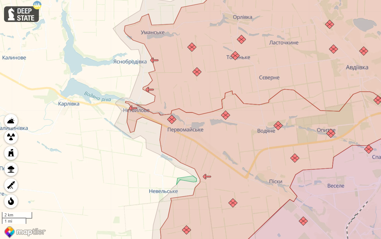 Вчера паблик Deep State сообщил о потере Уманского на Авдеевском направлении. Власти Украины этого не подтверждали. Генштаб вчера кратко сообщал о штурмах в районе Уманского.