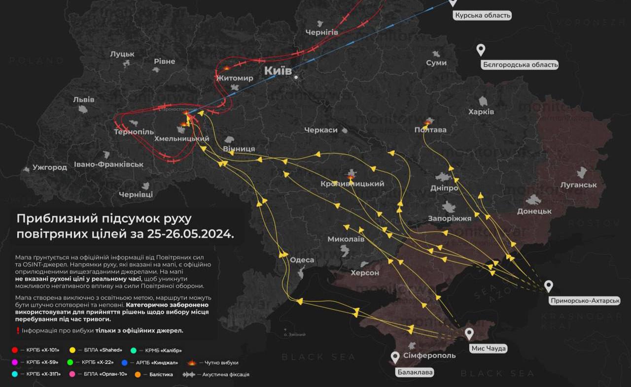 Судя по карте, крылатые ракеты долетели до Тернопольской области, а "Кинжалы" били по Хмельницкой.