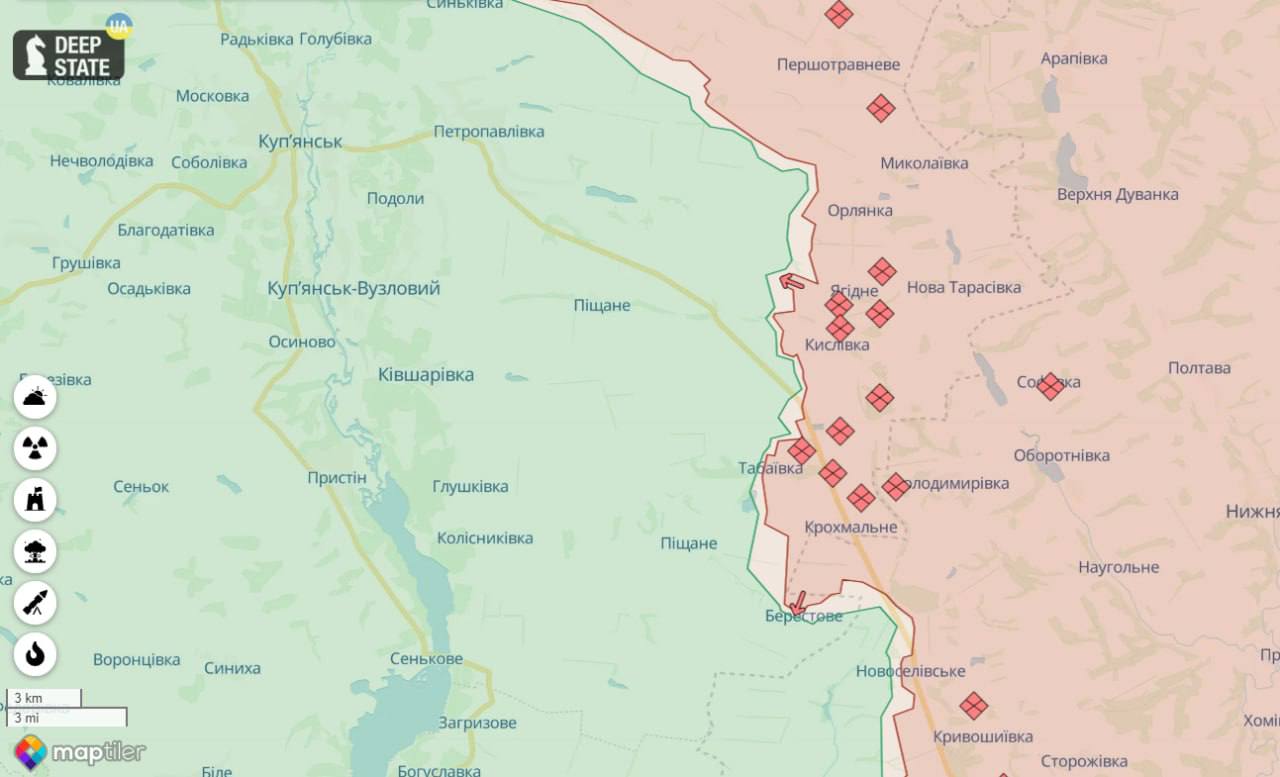 На Купянском направлении россияне продвинулись в Ивановке. Генштаб в последней сводке не комментировал ситуацию там, но позавчера заявлял о "частичном успехе" противника в районе этого села. РФ вчера заявила о захвате Ивановки.