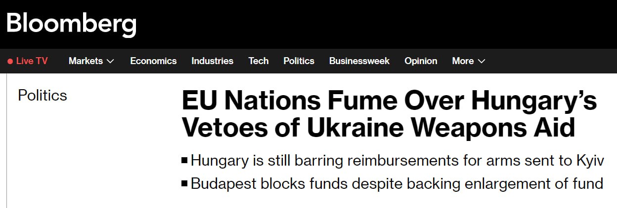 Однако, отмечает СМИ, только Венгрия полностью блокирует выделение дополнительных средств на военную помощь Киеву.