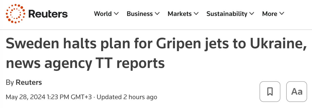 Швеция приостанавливает планы по отправке Украине самолетов Gripen, чтобы обеспечить возможность поставок и использования ВСУ истребителей F-16.