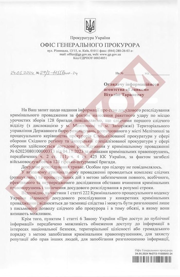 Гибель военных 128-й бригады от ракетного удара под Запорожьем. Прокуратура отчиталась о ходе дела