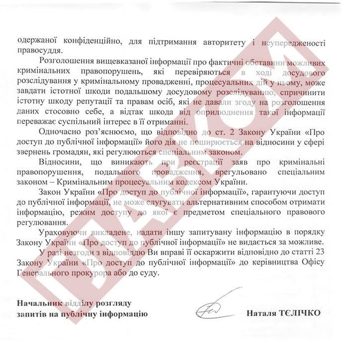 Однако, объясняют в Офисе генпрокурора, это обстоятельство не влияет на состояние расследования. Также это не освобождает лицо от уголовной ответственности в случае установления и доказательства его вины.