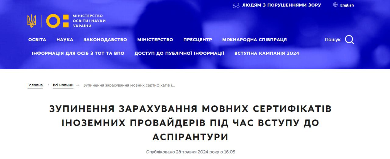 Поступающим в аспирантуру не засчитают сертификаты по иностранному языку - Минобразования Украины