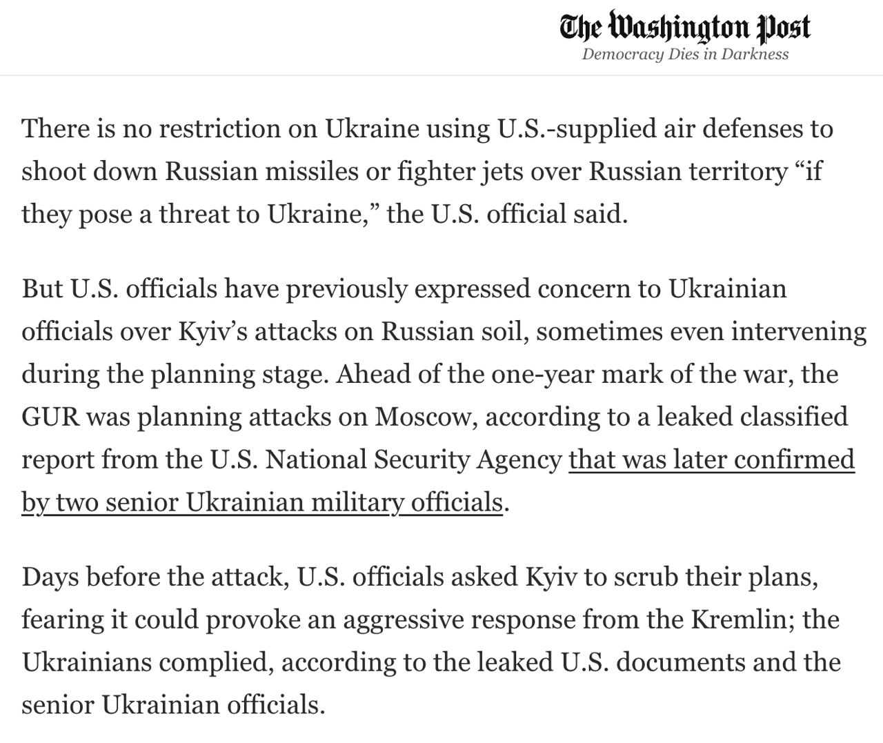Однако бывали случаи, когда американские чиновники выражали озабоченность по поводу атак на территорию РФ и даже отменяли такие планы. В частности, была отменена запланированная атака ГУР на Москву. Американцы опасались агрессивного ответа Кремля.