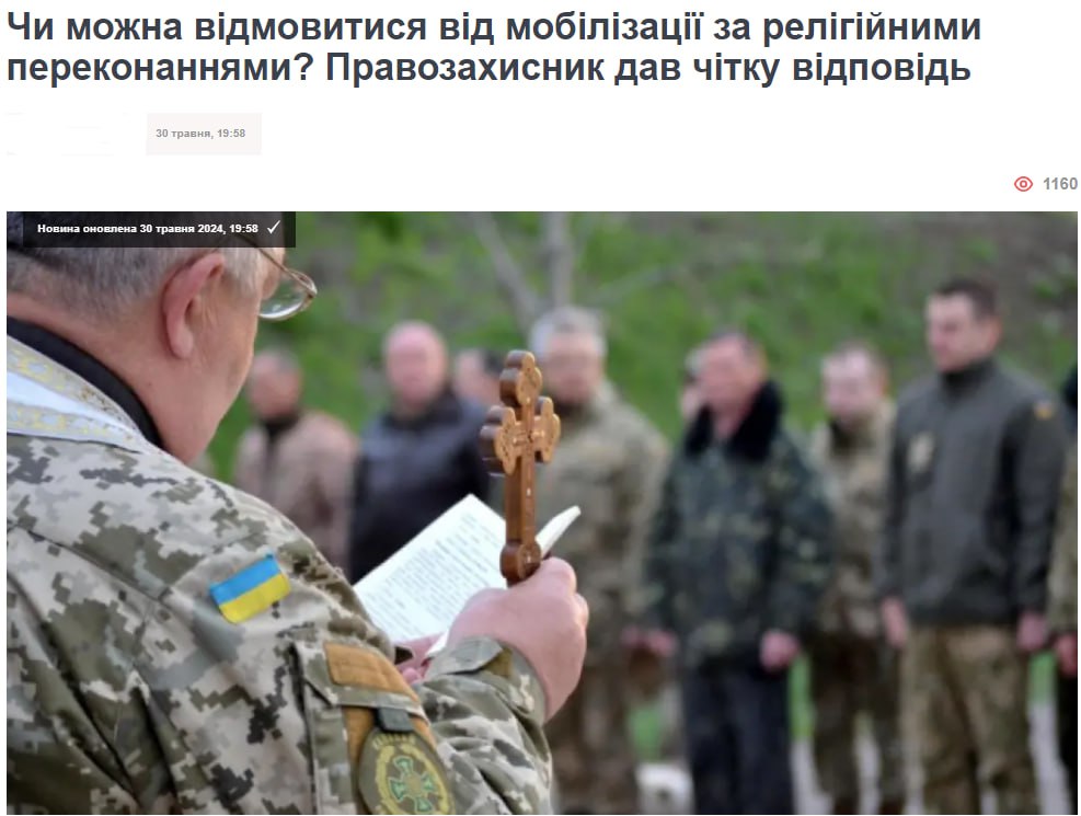 В начале мая Верховный суд Украины определил критерии, когда уклонение от мобилизации по религиозным убеждениям не наказывается законом.