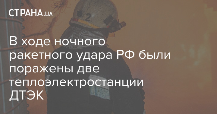 Сегодня ночью во время ночного ракетного удара РФ были поражены две теплоэлектростанции ДТЭК. Об этом сообщает пресс-служба компании.