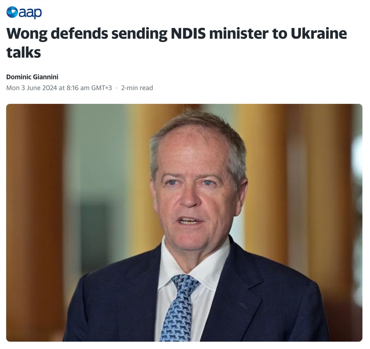 Австралия планирует отправить на саммит по Украине в Швейцарии министра по страхованию инвалидов Билла Шортена.