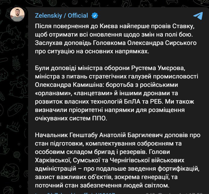 18:59 Зеленский вернулся в Киев и провел Ставку.