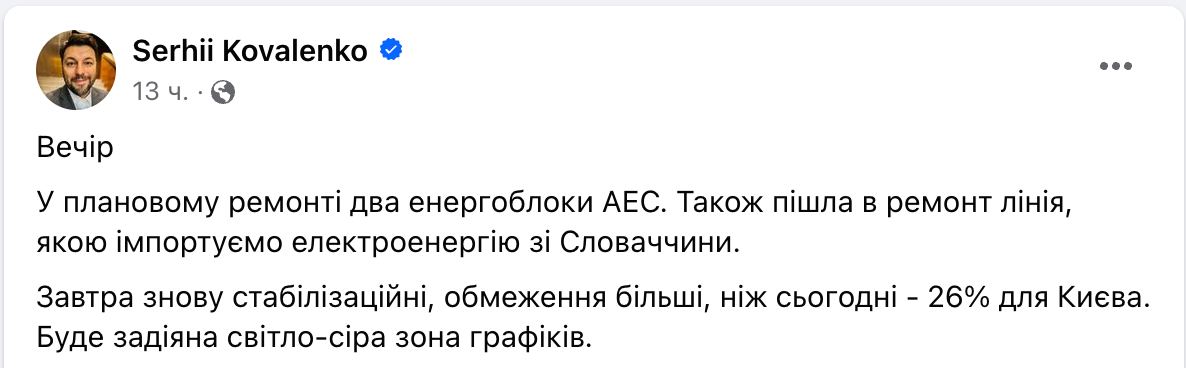 14:47 В Киеве введены аварийные отключения света, сообщает гендиректор Yasno Сергей Коваленко.