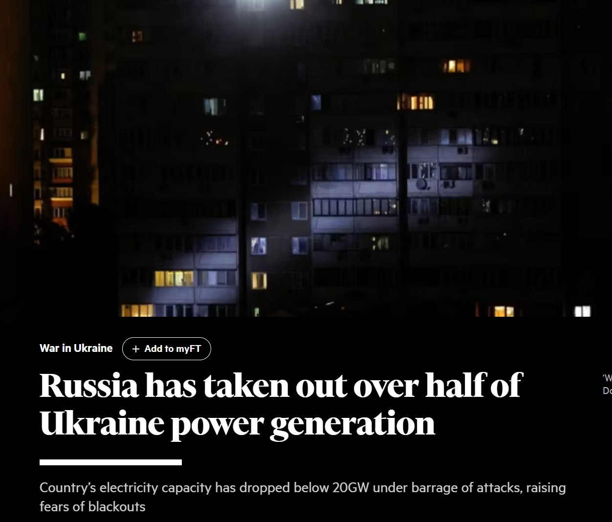 В целом Россия вывела из строя или захватила более половины украинских электростанций.