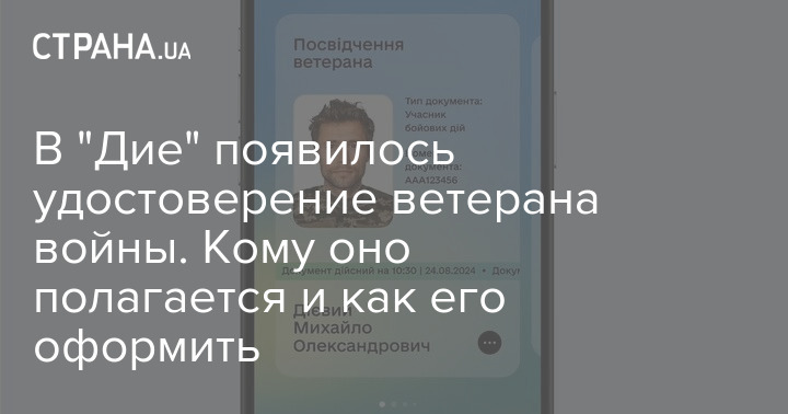 В мобильное приложение "Дия" добавили новый документ - удостоверение ветерана войны.
