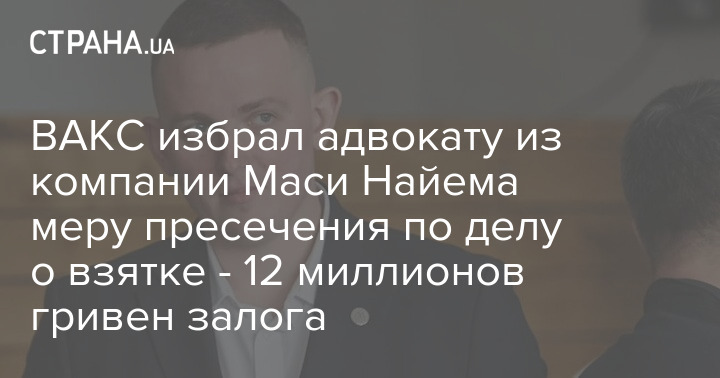 ВАКС избрал адвокату из компании Маси Найема меру пресечения по делу о взятке - 12 миллионов гривен залога