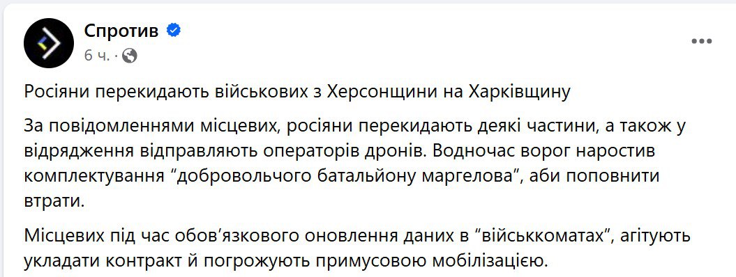Россияне перебрасывают часть сил с Херсонского направления на север Харьковской области.