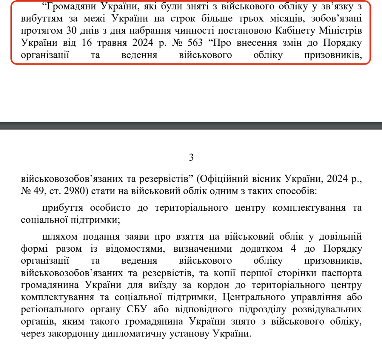 По новому постановлению Кабмина, сделать это военнообязанные украинцы "обязаны в течение 30 дней со дня вступления в силу постановления Кабинета Министров Украины от 16 мая 2024 г. № 563".