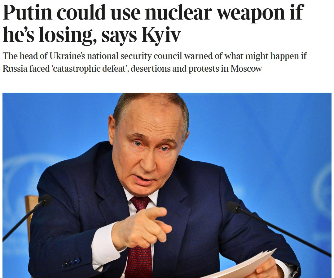 9.00 РФ может применить тактическое ядерное оружие в Украине, если ее армия начнет терпеть поражение. Такое мнение в интервью Times выразил секретарь СНБО Александр Литвиненко.