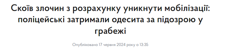 В Одессе 18-летний парень ограбил женщину, чтобы получить судимость и избежать мобилизации