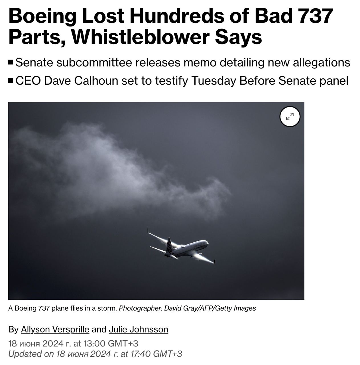 Также мы писали, что два сотрудника Boeing, которые публично говорили о нарушениях в компании, умерли при странных обстоятельствах.