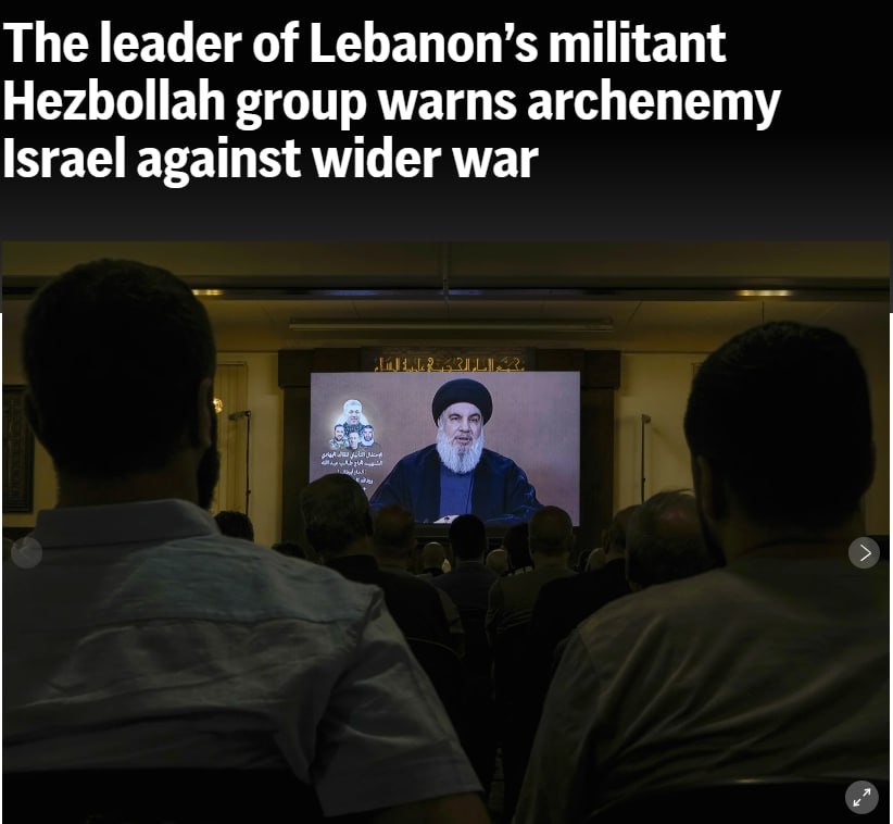 При этом Насралла предупредил Кипр, если его власти продолжат предоставлять Израилю свои порты и аэродромы для военных учений, то "Хезболла" может счесть правительство Кипр участником конфликта.
