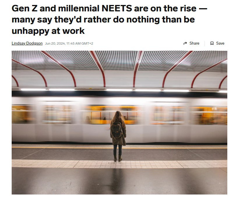 В мире рекордно растет безработица среди молодежи - это может быть связано с распространением культуры NEET.  Она расшифровывается "Not in Education, Employment or Training" (не учится, не работает, не проходит тренинги). Основной девиз таких людей - лучше ничего не делать, чем быть несчастными на работе.
