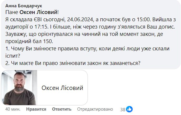 Между тем украинцы в комментариях к посту в Фейсбуке министра образования Оксена Лисового раскритиковали новые правила поступления в аспирантуру.