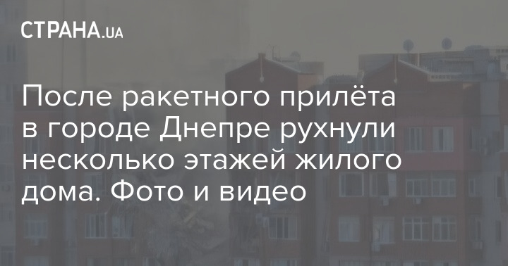 После ракетного прилёта в городе Днепре рухнули несколько этажей жилого дома. Фото и видео