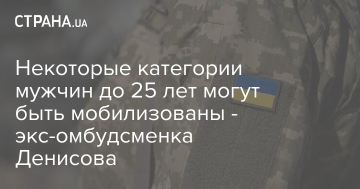 Правозащитница, глава Украинского центра защиты прав человека и экс-омбудсменка Людмила Денисова заявила, что есть категории мужчин до 25 лет, которых могут мобилизовать.