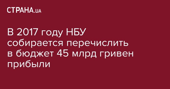 Национальный банк считает реалистичным перечисления в 45 млрд гривен прибыли в госбюджет в 2017 году, заложенные в принятый главный финансовый документ. Об этом в эфире "Радио Вести" сказала глава НБУ Валерия Гонтарева.
