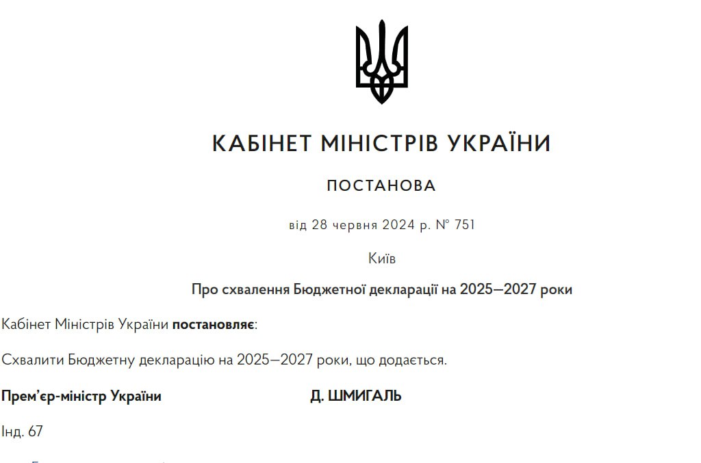 Об этом говорится в документе, опубликованном на сайте Кабинета министров Украины.