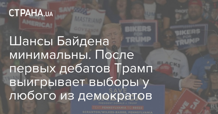 Шансы Байдена минимальны. После первых дебатов Трамп выигрывает выборы у любого из демократов
