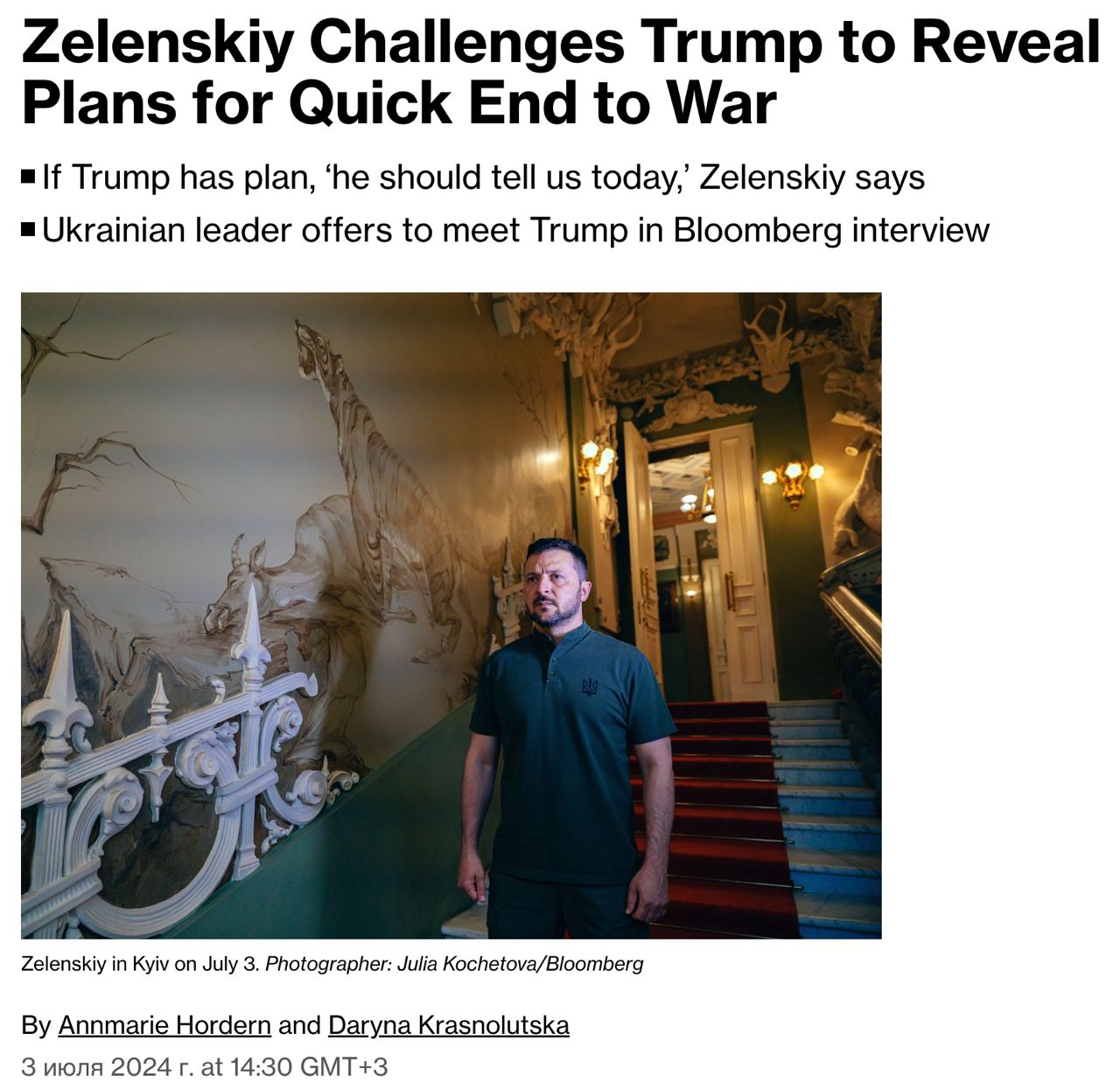 "Они не могут планировать мою жизнь и жизнь нашего народа и наших детей. Мы хотим понять, будет ли в ноябре у нас мощная поддержка США или мы останемся совсем одни", - сказал Зеленский.