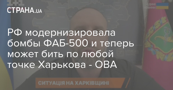 Глава Харьковской ОВА Олег Синегубов заявил, что РФ теперь может бить авиационными бомбами с фугасными боеголовками ФАБ-500 по любой точке Харькова.