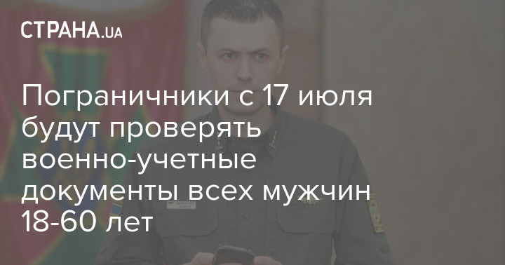 Спикер Государственной пограничной службы Андрей Демченко заявил, что на границе с 17 июля, когда истечет срок на обновление данных в ТЦК, пограничники начнут проверять военно-учетные документы всех мужчин в возрасте 18-60 лет.