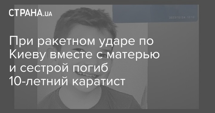 В результате вчерашнего ракетного удара по Киеву погибли 10-летний каратист Максим Симанюк, его мать и сестра. Они находились в своей квартире.