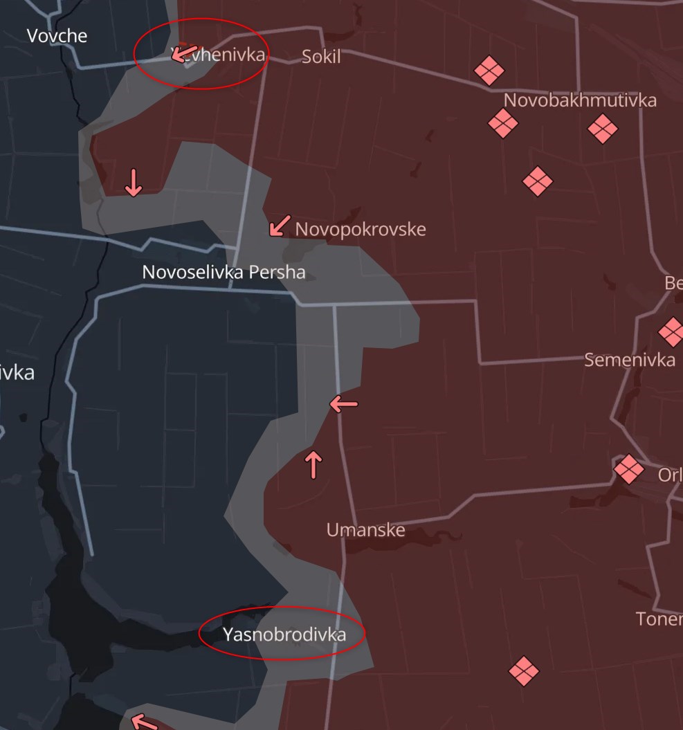Также у РФ есть продвижение у Евгеньевки на Покровском направлении, сообщает Deep State.