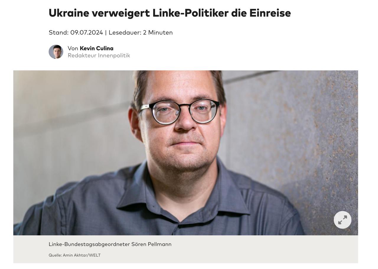 Депутат немецкого Бундестага Зёрен Пельманн, возглавляющий группу левых партий, заявил, что его не пустили в Украину "без какого-либо глубокого обоснования".