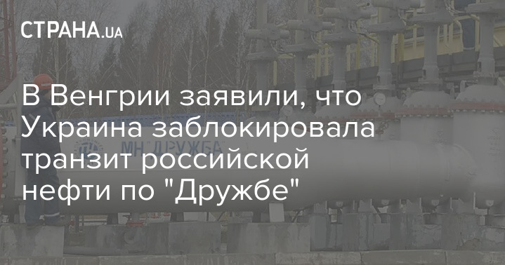 Украина заблокировала транзит российской нефти в Венгрию по нефтепроводу "Дружба".