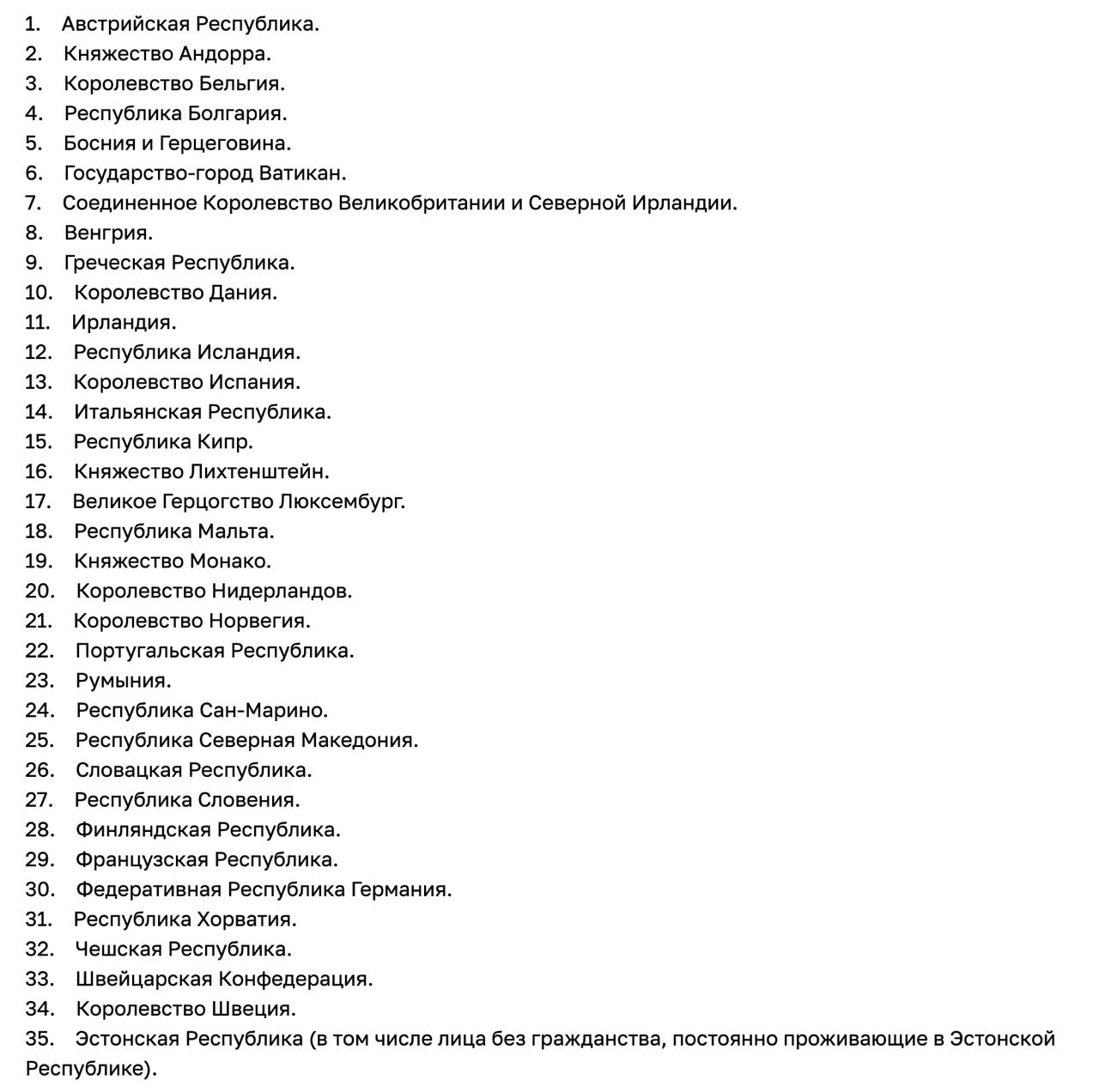 Полный список стран, с которыми РБ отменила визы для передвижения по земле - на скриншоте.