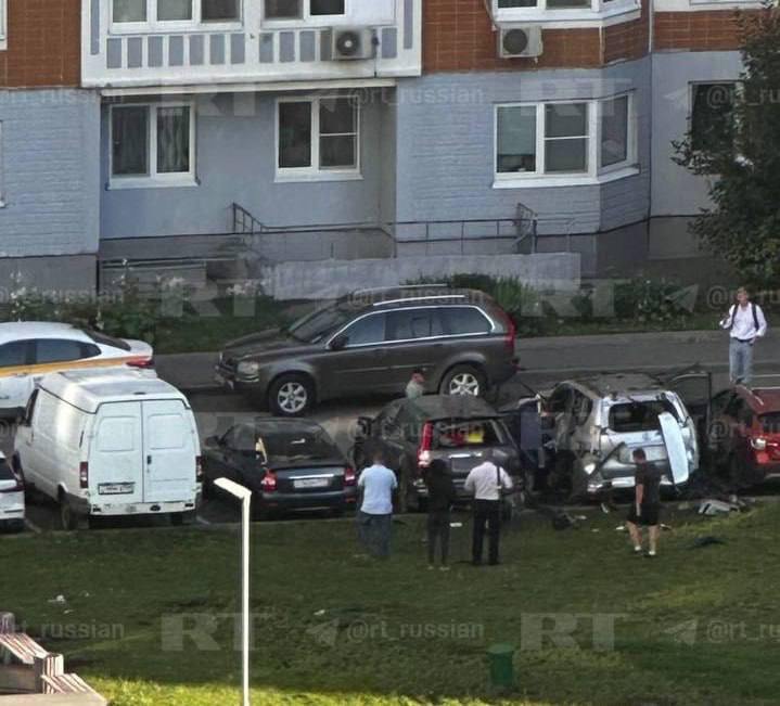 В Москве на парковке взорвалось авто Toyota Prado. Водитель выжил, но сильно пострадал.