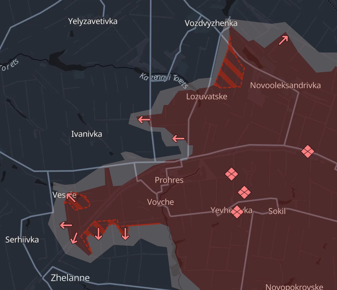 Иными словами, к востоку от Покровска российские войска продвигаются интенсивнее, чем на других участках фронта. И практически в ежедневном режиме.