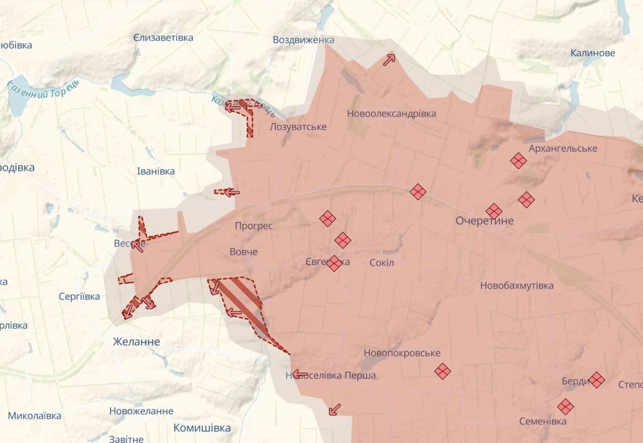Армия РФ продвинулась на Покровском и Торецком направлениях. Об этом сообщает военный паблик Deep State.