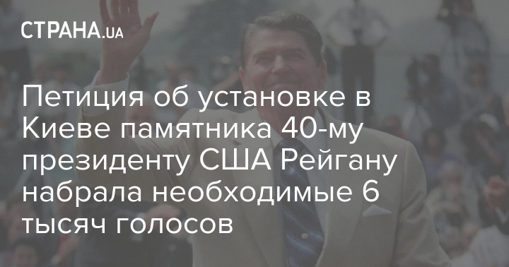 Петиция об установлении памятника 40-му президенту США Рональду Рейгану в Киеве набрала необходимые 6 тысяч голосов и передана на рассмотрение властей.