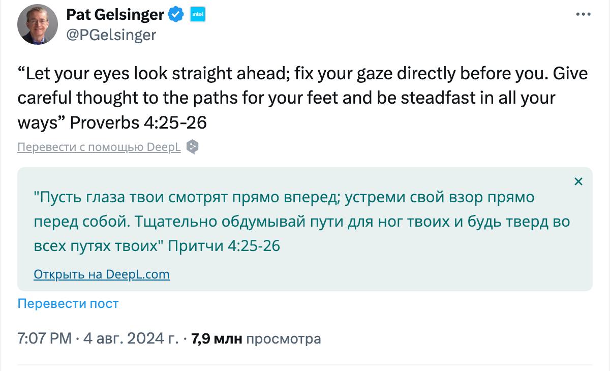 Глава Intel прокомментировал ситуацию притчей Соломона.
