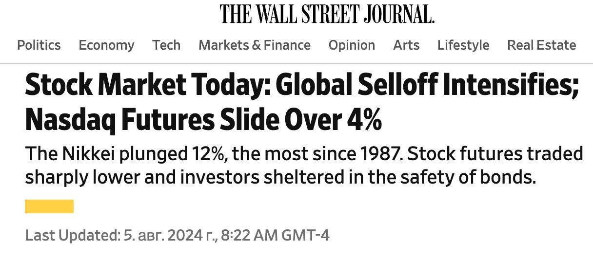 А в 16:30 по Киеву стартовали торги в США. Экономисты опасаются, что в Штатах тоже будет резкий спад. Его уже показала распродажа акций технологических компаний: Nvidia, Meta и Apple потеряли по 9% или более.