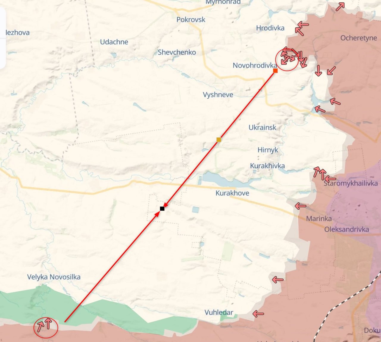Покровск часто и определяют в качестве главной цели россиян на данном участке фронта. Также звучат версии, что цель РФ - перерезать проходящую севернее трассу Покровск - Константиновка.