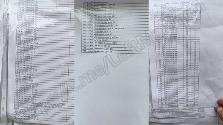 В списках на фото перечислены 211 квартир Левобережного района Мариуполя.