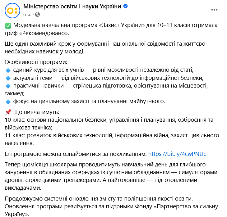 С сентября старшеклассники будут учить обновленный курс предмета "Защита Украины".