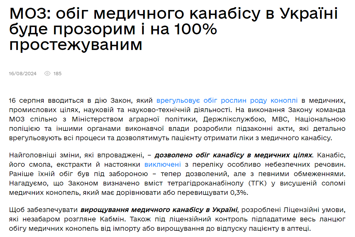 Сегодня, 16 августа, в Украине вступает в силу закон о легализации медицинского каннабиса. Об этом сообщает Министерство здравоохранения.